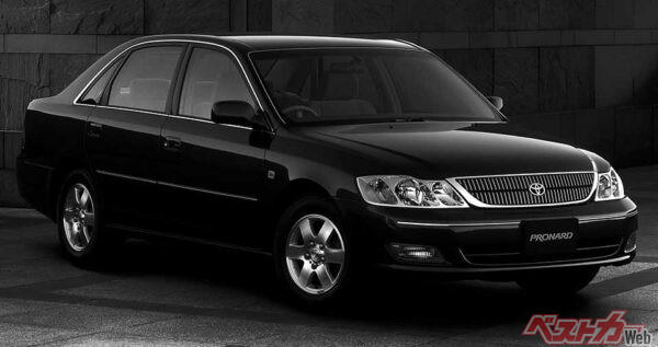 2000年にはアバロンの後継となるプロナードが逆輸入。全長×全幅×全高は4895×1820×1460mmとさらに大きくなり、室内長×室内幅×室内高は2155×1545×1215mmとミニバンのような広い室内が売りだった。V6、3L、215ps搭載で価格は315万円からだったが、人気はパッとせず、2003年11月、わずか3年半で販売中止となった。