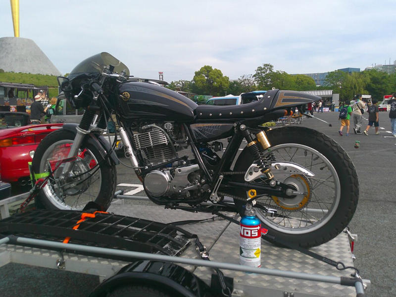 SR400がカスタムの一部。ワンオフで製作したパーツも多数です。