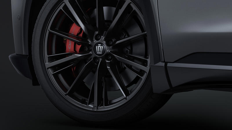 ボディーカラーには専用の「マットメタル」をチョイス。最表面にはマット塗装のメンテナンスを楽にする「特殊表面処理(TMコート)」を施しており、匠(たくみ)の技術で薄膜かつ均一に仕上げ、マットの外観に影響を与えずに持久力のある防汚性と汚れ除去性を実現したという。マットブラック塗装の21インチアルミホイール(235/45R21タイヤ&21×8 1/2Jアルミホイール&センターオーナメント)も採用している。