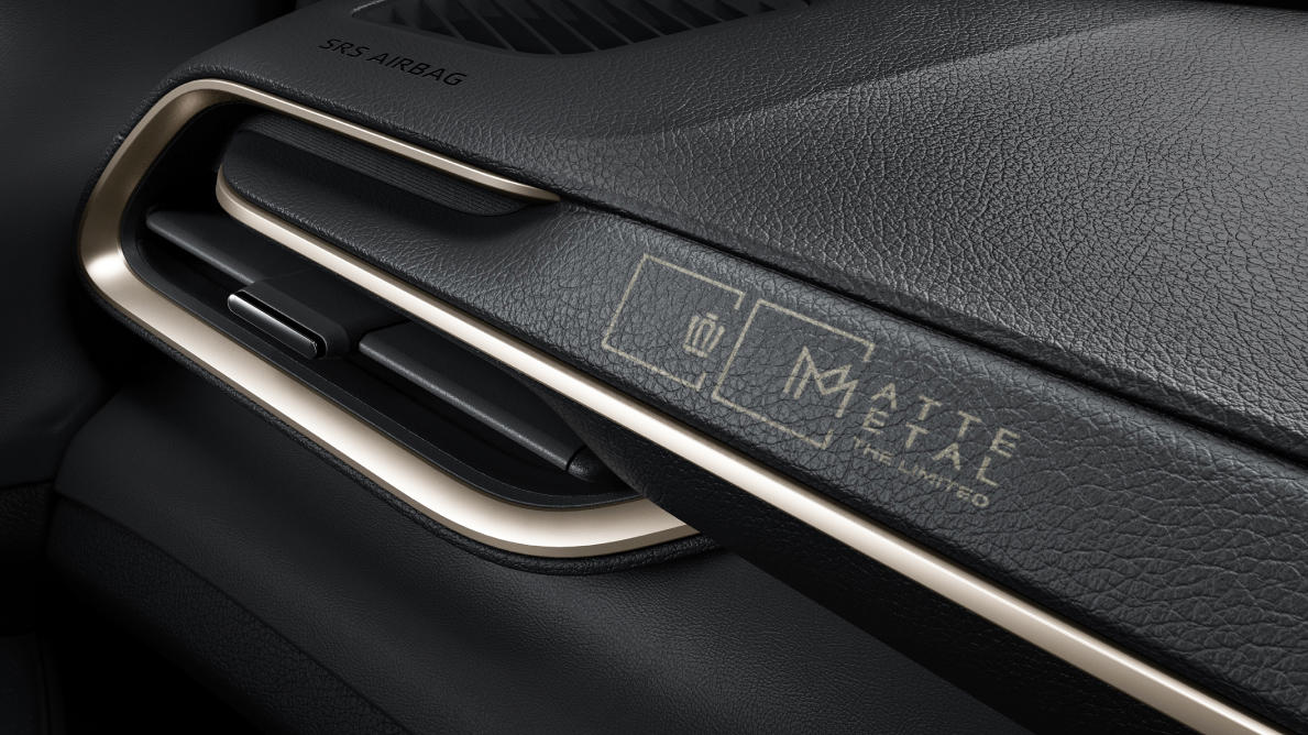 専用色の「ブラックラスター」を設定したインテリアには、インストゥルメントパネルに「THE LIMITED-MATTE METAL」のレーザー加飾をあしらったほか、スポーツシート(スポーツレザー<本革>/レッドステッチ付き)とディンプル加工を施した本革シフトノブ(ピアノブラックオーナメント)を装備。スマートフォンを車両のキーとして使える「デジタルキー」も標準装備としている(RSではメーカーオプション)。
