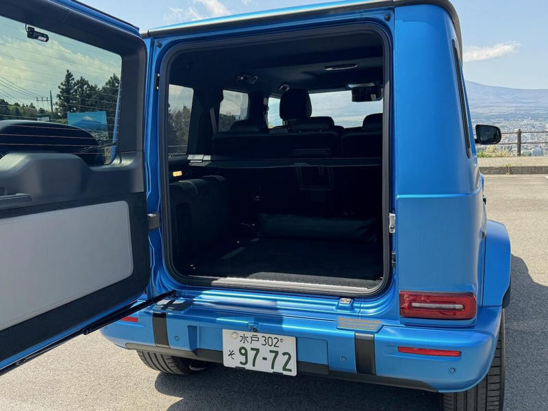 従来のGクラスはスペアタイヤを背負っているが、電動のG580ではボックスとなっており、充電ケーブルなどを入れておけるケースとして使える(筆者撮影)