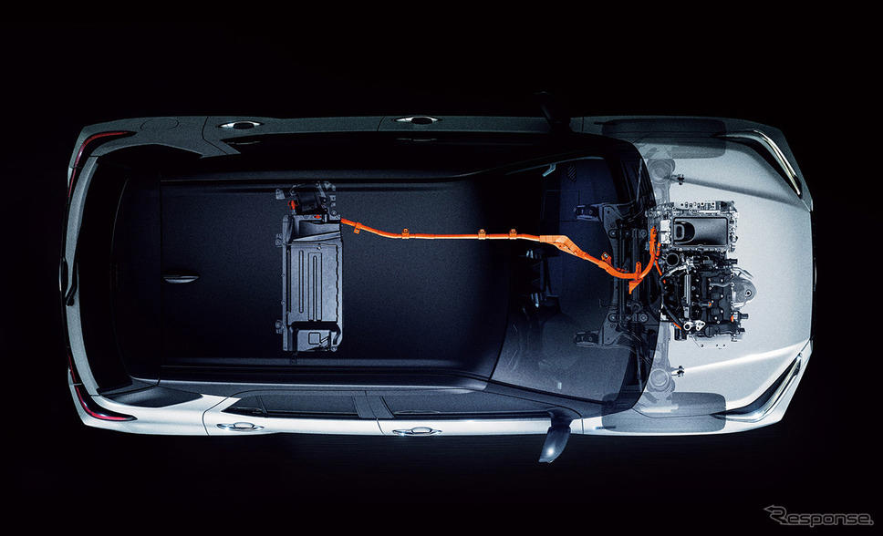 駆動方式は2WD。エンジンは直列3気筒DOHC12バルブ、排気量1196cc、最高出力82ps、最大トルク10.7kgfm。モーターは交流同期電動機で最大出力106ps、最大トルク17.3kgfmを発揮する。