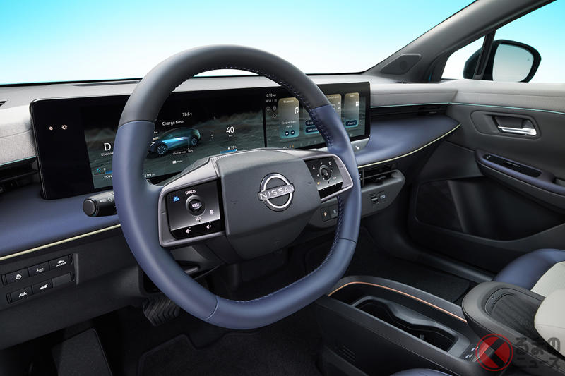 現行の2代目リーフ(全長4480mm×全幅1790mm×全高1560mm:日本仕様)よりも少しコンパクトになりながらも、室内空間は同等の広さを確保したといいます。