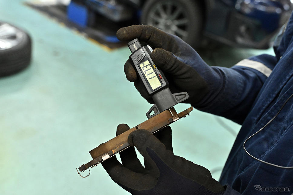 またブレーキパッドの残量も確認したが、フロントで11.7mm、リアで9.1mmだった。新品がフロントで12~13mm、リアで10~11mm程度と言われているので、全然ブレーキパッドを消費していないのが分かる。それだけ回生ブレーキで十分に減速できているという証明だろう。