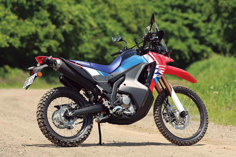 ホンダ・CRF250Lの兄弟車であるCRF250ラリーは、フルカウルや特徴的な顔つきを持つ大型スクリーンなどを装備した、ダカールマシンイメージのツアラーモデル。ロングランを快適に走破できるよう、Lとは違う工夫も随所に施されたモデルだ。