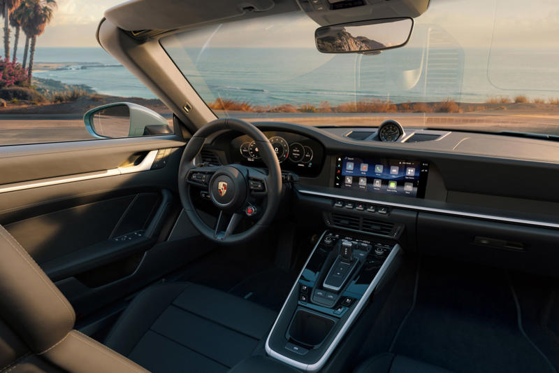 装備のアップグレードも最新型の特徴とされ、「20/21インチスタッガードフィットカレラSホイール」や「ポルシェトルクベクトリングプラス(PTV+)」、911ならではのサウンドを奏でる「スポーツエキゾーストシステム」などを標準で装備している。