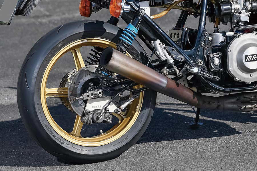 「フロントフォークはかつてのモリワキカヤバでノーマルに同じΦ36mm、これをセッティング。リヤはS&W(Zが活躍していた時代のAMAスーパーバイクでも多用されていた)で入庫当時から付いているんですけど、これがよく動くんです。周回レースもイケるんじゃないかってくらい(笑)」
