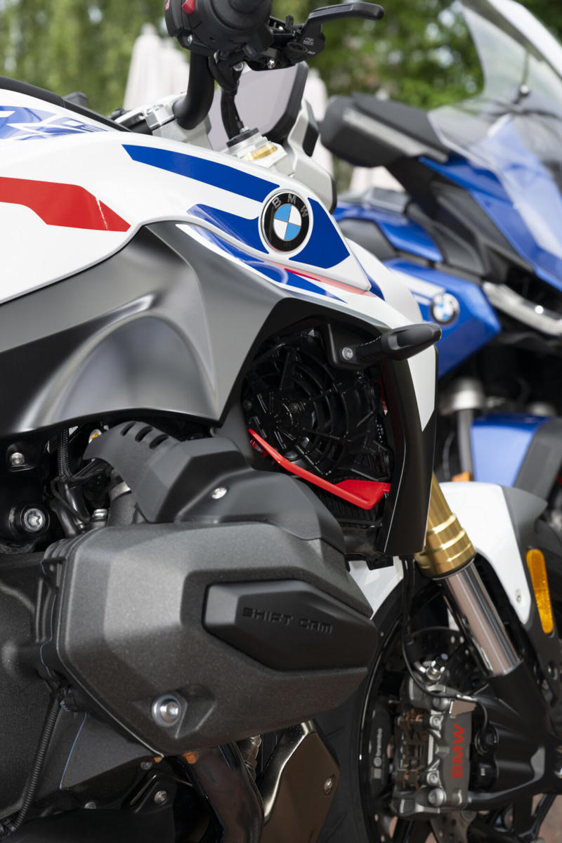 ラジエーターシュラウド内の赤い樹脂パーツは走行風を効果的にラジエーターへと導くとともに、フロントマスクをより印象的に。LEDヘッドライトとライトカウルの形状ともあいまって、前衛的な印象です。S 1000 R やM 1000 Rなど4気筒ロードスターにも通じるデザインながら、R 1300 Rの佇まいは独自の個性を放っています。