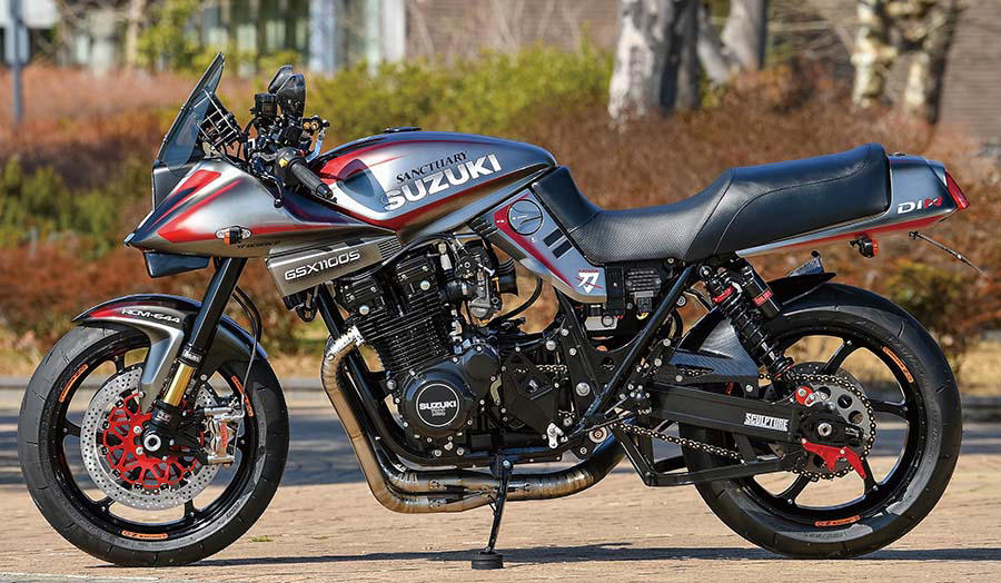 基本としている前後17インチ仕様を初めとして倒立フロントフォークやフルカスタムペイントなど、カタナ=GSX1100Sへの現代化+個性化提案とでも言うべき車両を手がけてきたACサンクチュアリー。’22年のRCM-500、’23年のRCM-588(3桁の番号は通算製作番号=シリアルナンバー)などはその一環で、前述のような個性化でも目を惹いた。カタナの動きはどうなっているのだろう。