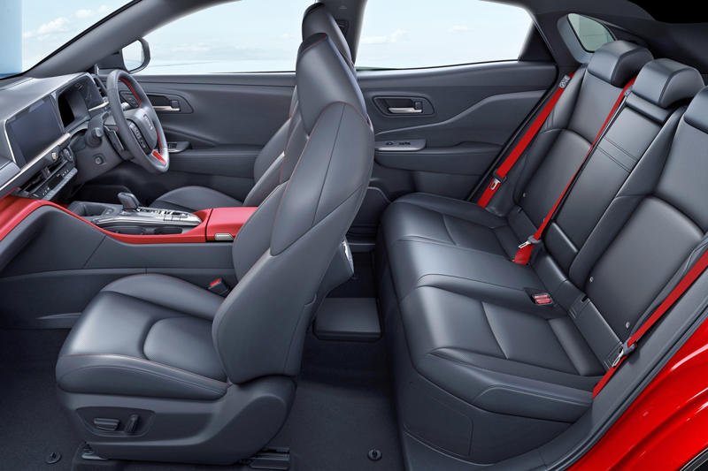 【引用:トヨタ】外装にはブラックのガーニッシュがアクセントとして加わり、鮮やかなレッドのボディカラーがスポーティな雰囲気を一層引き立てている。全長4,710mm、全幅1,880mm、全高1,560mm、ホイールベース2,770mmというサイズはクラウンシリーズで最もコンパクトな部類に入り、フェラーリ・プロサングェと比較しても全体的に引き締まった印象を与える。都市部での取り回しや俊敏な走行にも適したプロポーションといえる。続きを読む