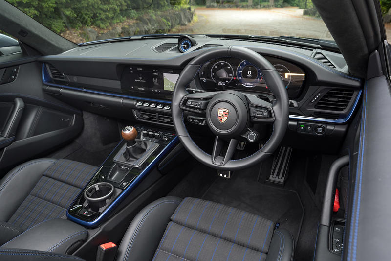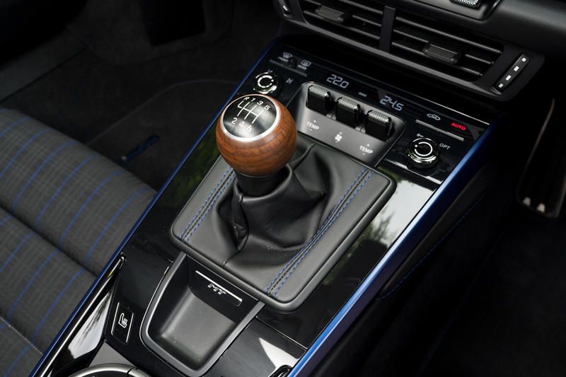 それが復活したのは991型後期で、狙いとしてはGT3やターボの高性能化が著しいなか、身の丈で存分に運転を楽しめる走り好きのためのしつらえというかたちだったようにうかがえる。当初から7段MTが設定されていたが日本仕様はPDKのみの設定だった。これが992型前期では7段MTも選べるようになり、新車の911では数少ない3ペダルのモデルとなったわけだ。