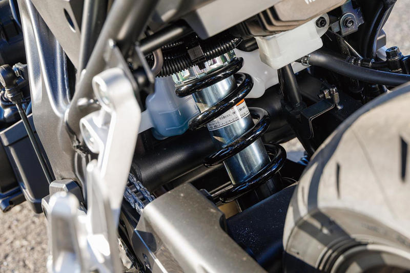 スイングアームは高剛性のアルミ製で構成。スタンダードのリアショックは、ショーワ製分離加圧式シングルチューブタイプを採用している。