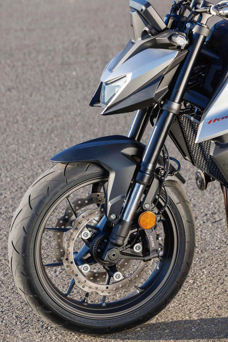 そしてかなりの高回転域まで、パッとスロットル操作に応じて車体が前に出ていく感覚があります。CBRから約40PSも削っているので当然CBRほど強烈ではないですが、その力感はストリートファイターにふさわしいキャラクターです。スーパースポーツのエンジンを使っていることのメリットを、強く感じられる好ましいセッティングでした。