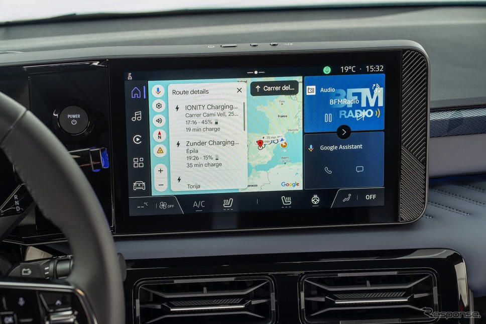 ニッサンコネクトインフォテインメントシステムを通じてGoogle Built-inサービスと統合、Googleマップが標準で搭載される。これはルート計画においても重要な役割を果たす。目的地が利用可能な航続距離を超える場合、システムは充電レベル、平均消費量、温度を考慮してルート沿いの充電ステーションを自動的に特定する。最適な充電速度を確保するためにバッテリーを事前調整することも可能だ。