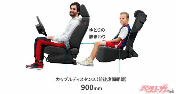 前後席間距離も900mmあり膝元空間も余裕がある