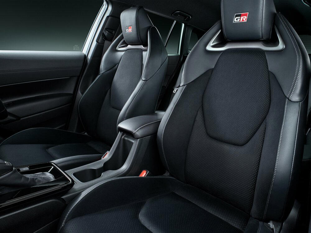 GRロゴや専用ステッチが入ったGRスポーツシートインテリアも、標準モデルとは一線を画しており、GRロゴ入りのスポーツシートは、身体が触れる部分に滑りにくいスエード調素材を採用。ホールド性を高め、ハード走行中であっても安定した姿勢を維持することができます。ステッチやベゼルの加飾などにも、GRブランドらしい意匠が施されており、運転席まわりの雰囲気は一段とスポーティになっています。