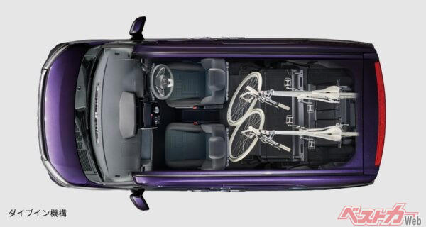 ルーミーが実用に徹して価格を割安に抑えたことも、販売が好調な理由だ。収納設備が豊富で、2016年の発売時点から、カップホルダーは500mlの紙カップを含めてさまざまなサイズに対応している。荷室の床を反転させると、汚れを落としやすい素材が貼られ、自転車を運んだ後の清掃もしやすい。