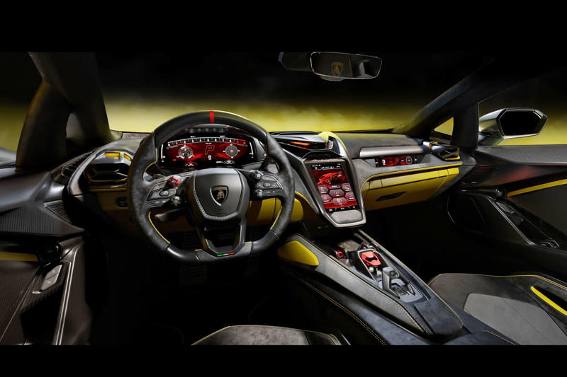パワートレインは、ランボルギーニ史上最もパワフルな6.5L・V型12気筒エンジン(最高出力835ps/最大トルク725Nm)を搭載。このV12エンジンの最高回転数は9500rpmと超高回転型だ。