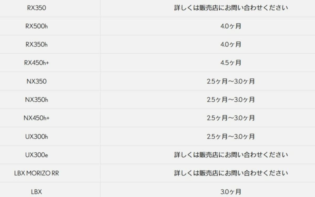 現在発売中のモデルは2025年2月27日に正式販売開始。つまり、約半年しか経過していません。念の為、2025年8月22日更新の「工場出荷目途」を確認すると、2.4Lターボエンジンを搭載するRX350のみ「詳しくは販売店へお問い合わせください」状態。電動化モデルはすべて販売中であり、納期の目途が立ちます。