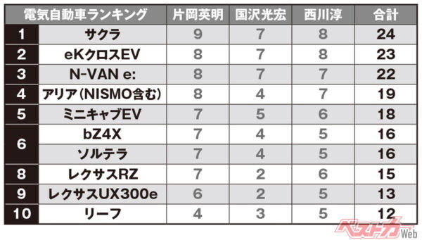 ベストカー執筆陣が選ぶ日本車電気自動車ランキング