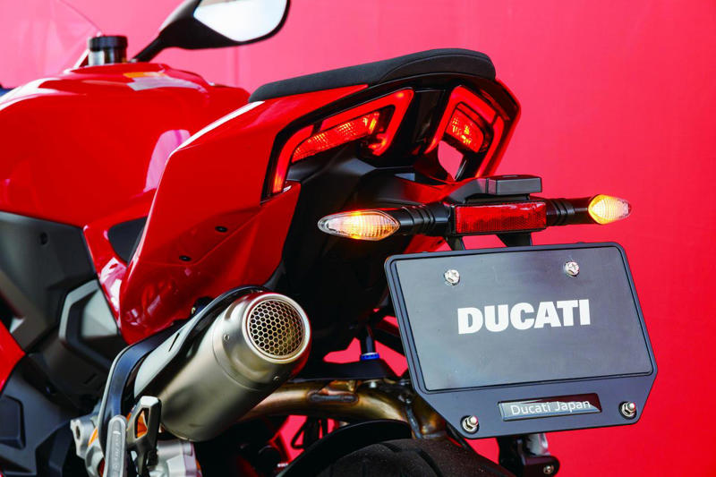 一目でパニガーレのリアビューとわかる、テールライトのデザイン。C型に光らせるのが最近のドゥカティの特徴で、こういったディテール一つひとつに個性を宿らせる。