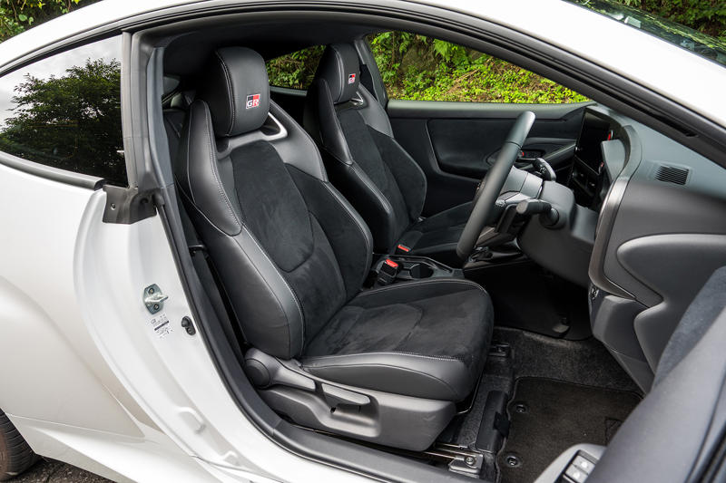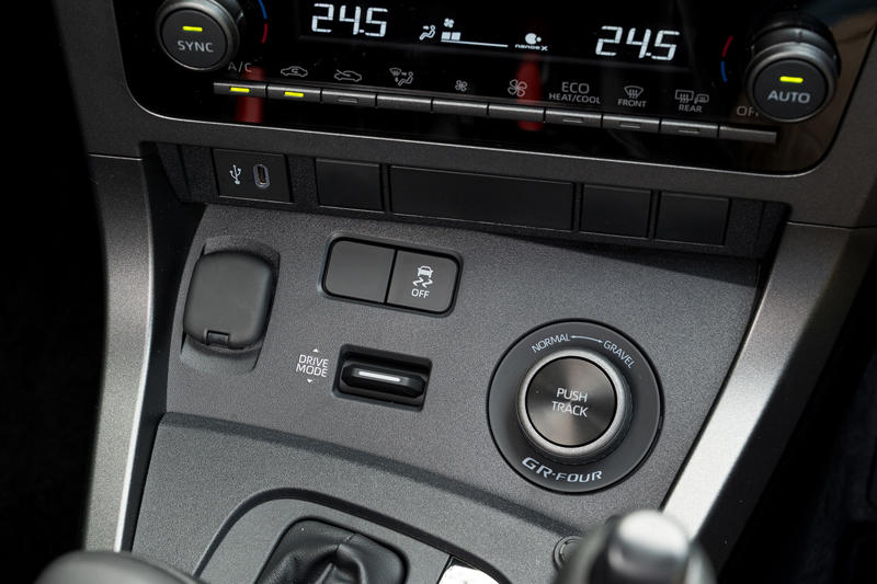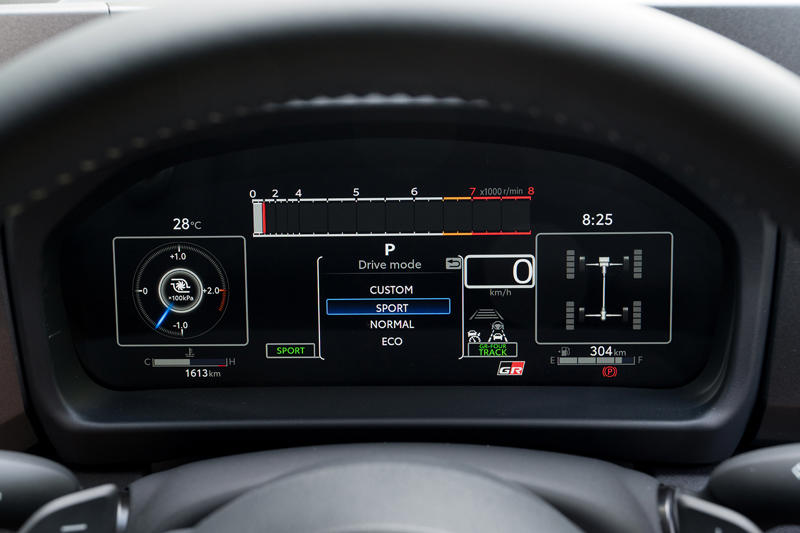 取材車はRZ“ハイパフォーマンス”でトランスミッションはGR-DAT、サイドブレーキの移設キットや冷却性能を強化するクーリングパッケージが搭載されていた。くだんのエアロパフォーマンスパッケージは2025年秋以降のリリースということで、現状では最も走りに振られた2ペダルのGRヤリスということになる。