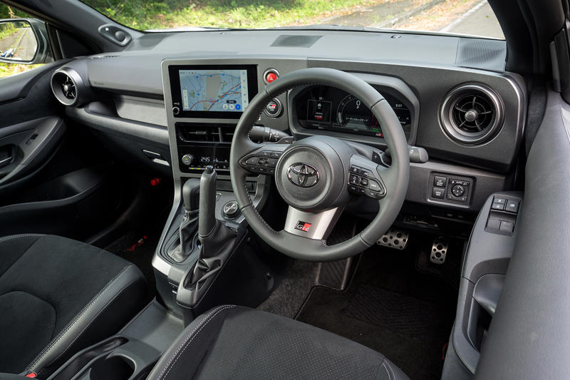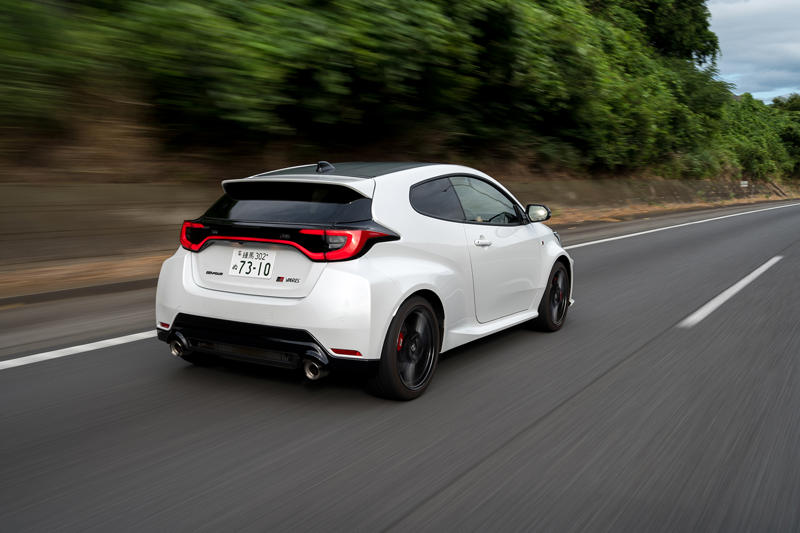 そもそもBセグメント級のコンパクトなボディーにして300PSオーバーのパワーをシンプルかつ本格的な4駆で走らせるというのは、今や貴重すぎる体験だ。それをスポーティネスにおいてはMTと遜色のないATでイージーに扱わせてくれるのは、1980~1990年代のWRCに舞い上がった脚力弱め、あるいは痛風持ちのオッさん世代には思いがけないご褒美である。トヨタも罪なクルマをつくるのう……と乗っていて、ちょっと驚いたのは曲がってナンボの話ではなく、普通に走らせていての動的質感が明らかに上がっていることだった。