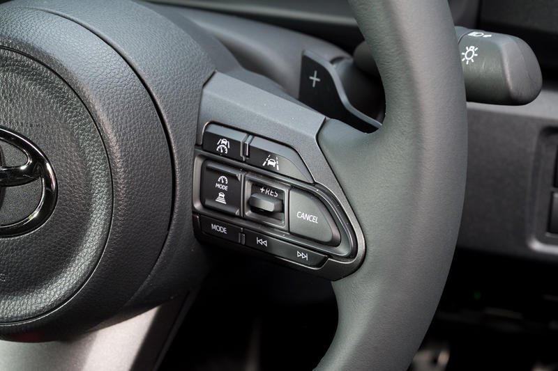 取材日は折からの猛暑で早朝から気温が30℃に届かんとする、高性能ターボ車にとってはかなり厳しい環境だった。が、GRヤリスのスピードの乗りによどみはない。合流ではトントンと小気味よくギアを上げながら高速道路の流れに乗っていく。変速の感触はタイトだけど、DCTほどサクサクにドライな感じではなく、一般道でもわずかにトルコンのヌル味がみてとれる。例えば地下駐車場の上りスロープから歩道をまたいで路上に出るような曖昧な速度調整を要する場面では、そのわずかな滑りがありがたい。まどろっこしくない程度にトルコンのうまみが生かされているあたりは気が利いている。