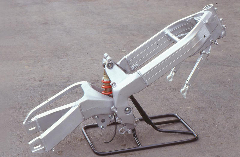 改モデルの外観上の大きな特徴が左右非対称のガルアーム。フレームはヘッドパイプとスイングアームピボットプレートを直線的に結ぶMC18から基本を踏襲するが、ヘッドパイプはエンジン側に7mm接近、11.3mm下方に移動されており、フロントエンドを車体重心に接近させて運動性能の向上を図っている。